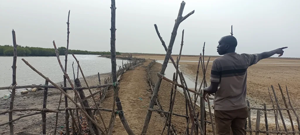 Las comunidades de Bandial y Etama enfrentan un fuerte proceso de salinización del suelo, lo que provoca pérdida de parcelas arroceras, degradación de viviendas y mayor exposición a fenómenos climáticos extremos. Estos impactos están estrechamente ligados a la regresión del manglar y a la falta de planes de gestión sostenible de sus recursos.