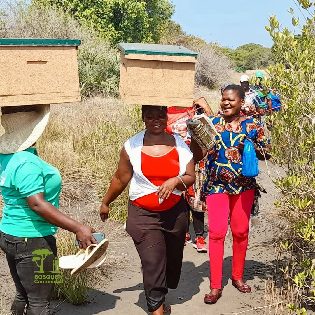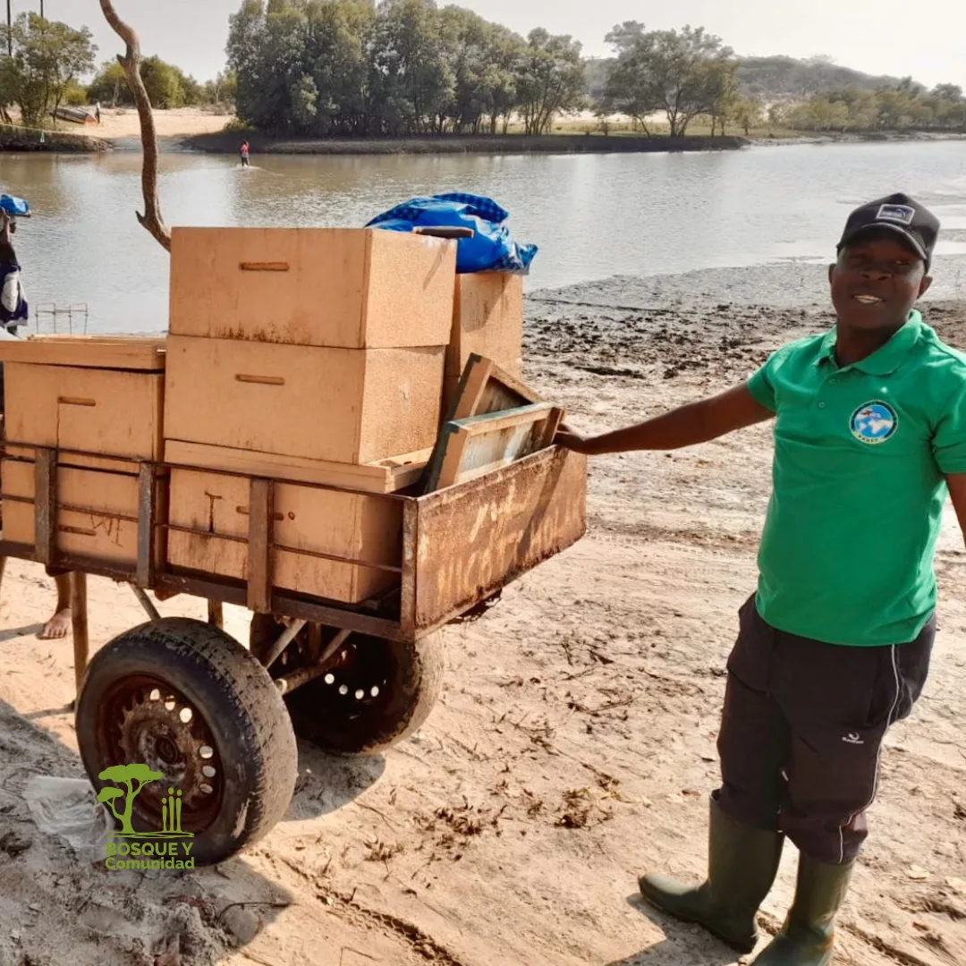 En el marco de nuestro proyecto en Marracuene (Mozambique), hemos creado un nuevo apiario comunitario, reubicando las colmenas en una zona con mayor potencial de floración y producción de miel.