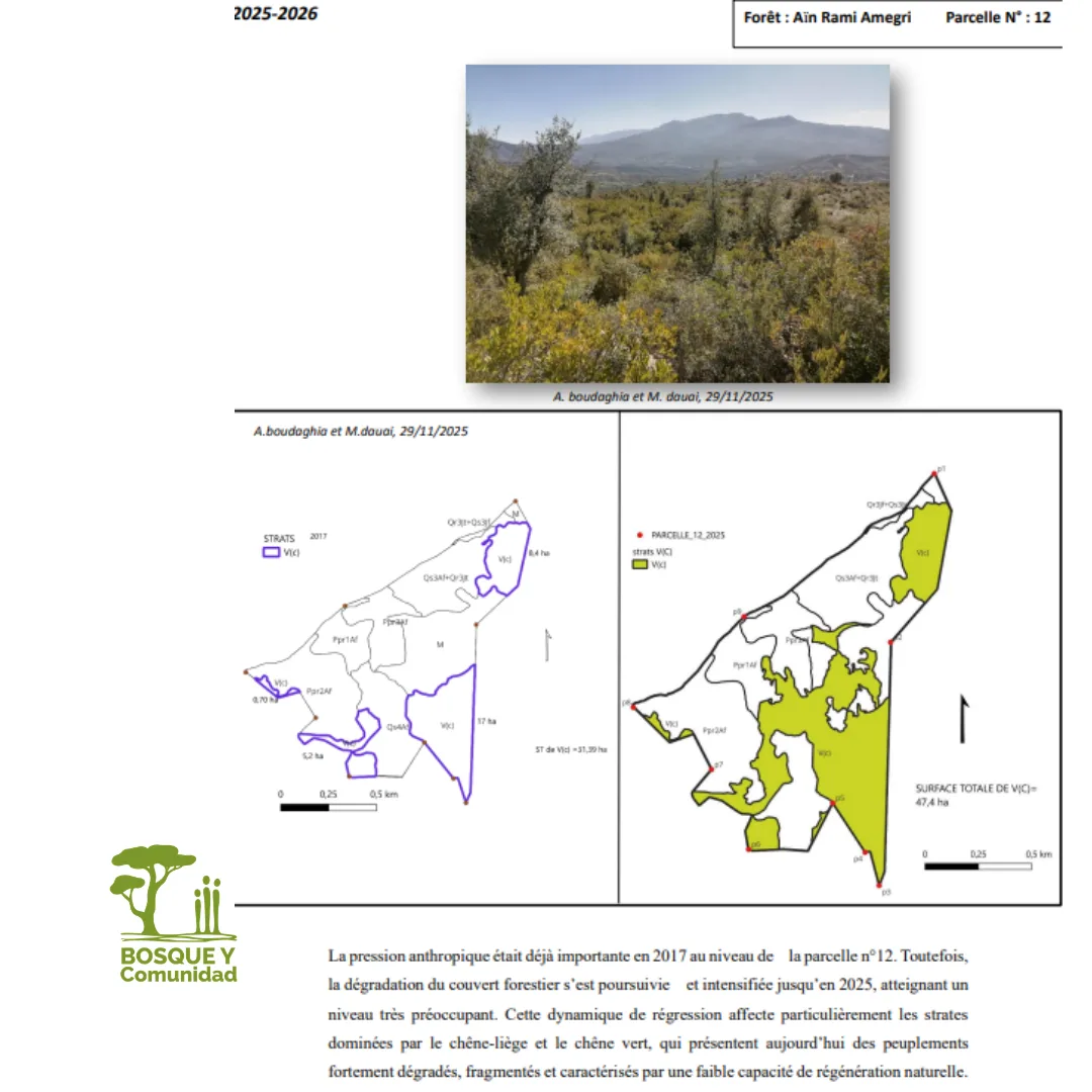 En el marco del proyecto OC183/2023, estamos desarrollando en la comunidad de Amegri (Commune Territoriale de Bab Taza, Marruecos) una línea de trabajo orientada a la gestión sostenible del Bosque de Aïn Rami. Como parte de este proceso, hemos publicado el estudio técnico que analiza el estado actual de la parcela y su evolución reciente.